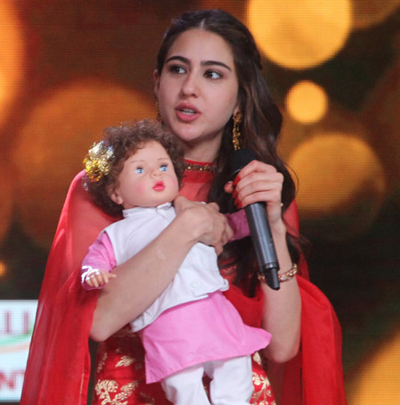 While the top 11 put their best foot forward to impress judges, our charming host Aditya Narayan left no stone unturned in trying to impress the lady, Sara Ali Khan. He made multiple attempts to woo her and win her heart. He even took her by surprise by gifting her a cute doll whilst on the sets. He fondly named the doll, Taisur Ali Khan Narayan and asked Sara to take care of it while he continued hosting. She held it in her arms, gave it a bottle of milk and took great care of it throughout the entire episode!